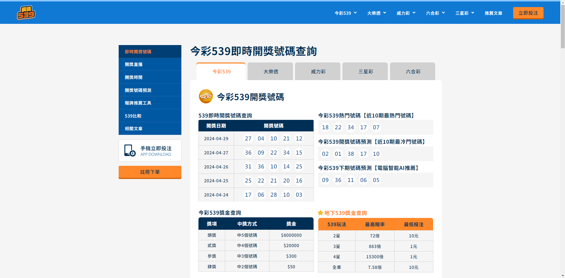今彩539開獎號碼