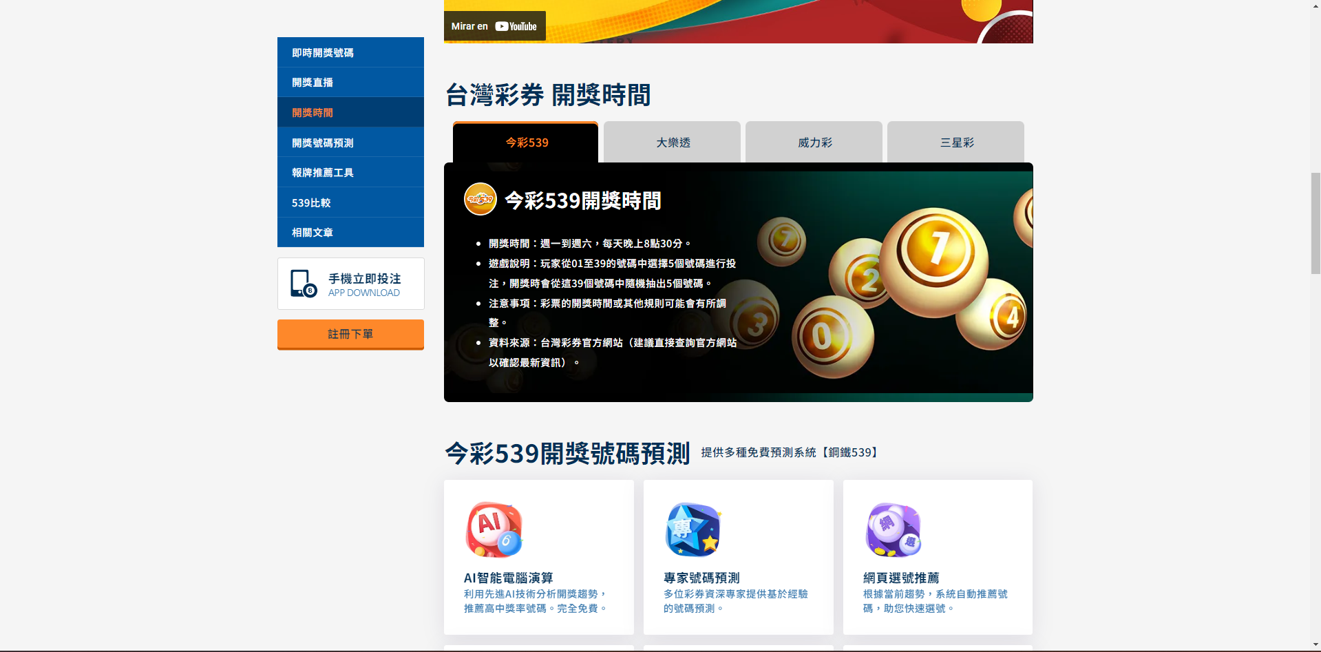 今彩539開獎時間在每周一至六晚上8:30公佈開獎結果。玩家可以選擇購買1-5個號碼,而開獎球數從1-39號從中選擇。