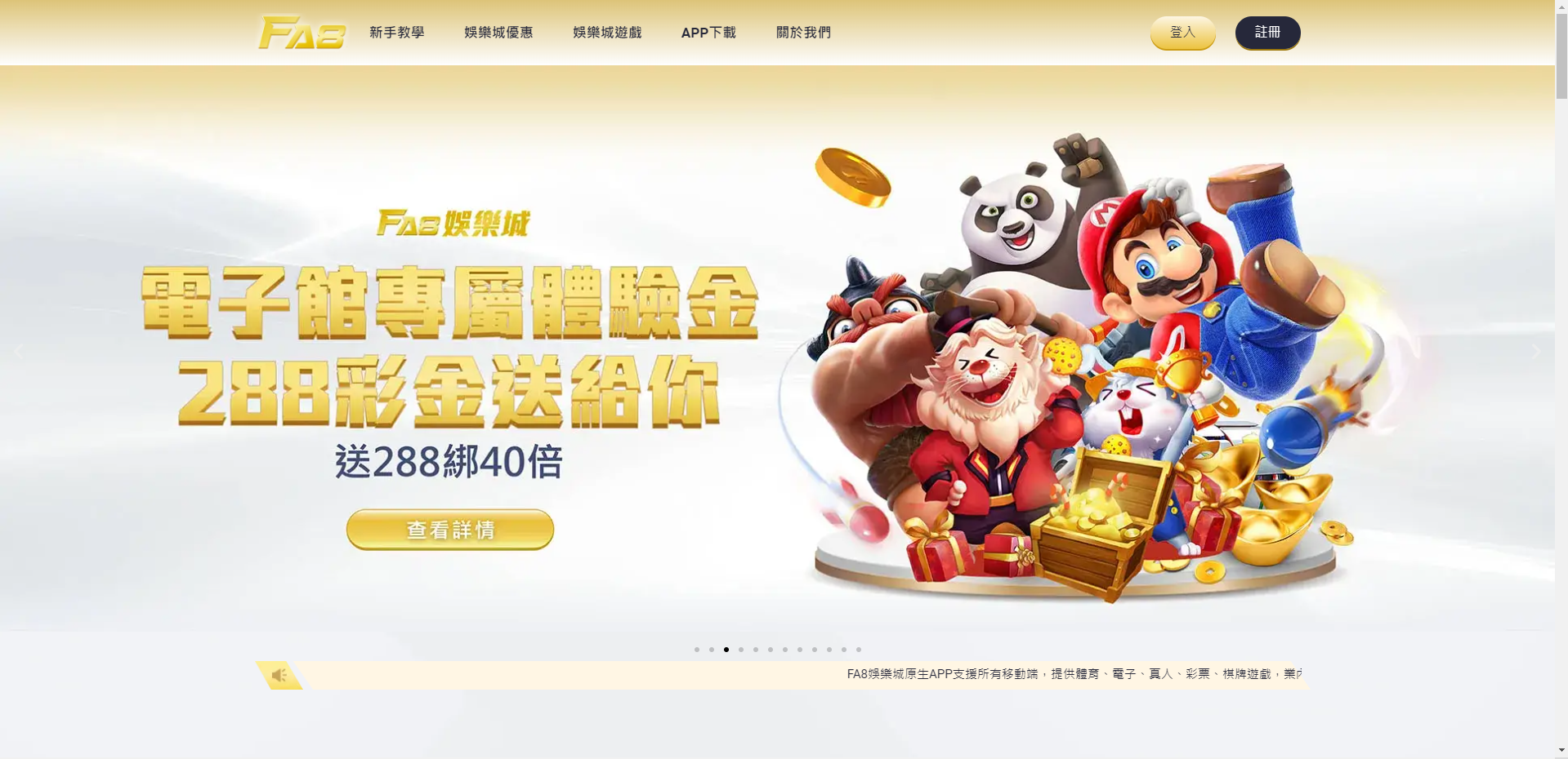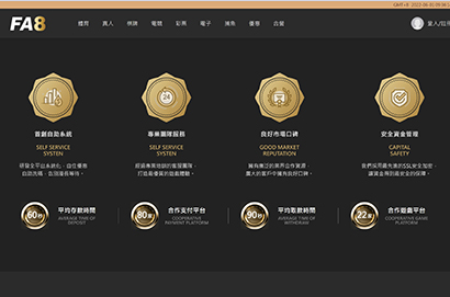 FA8娛樂城的首頁設計採用簡潔的風格,標誌也相當清晰。沒有太精緻的設計,但又不顯得單調,乾淨俐落!操作方便!
