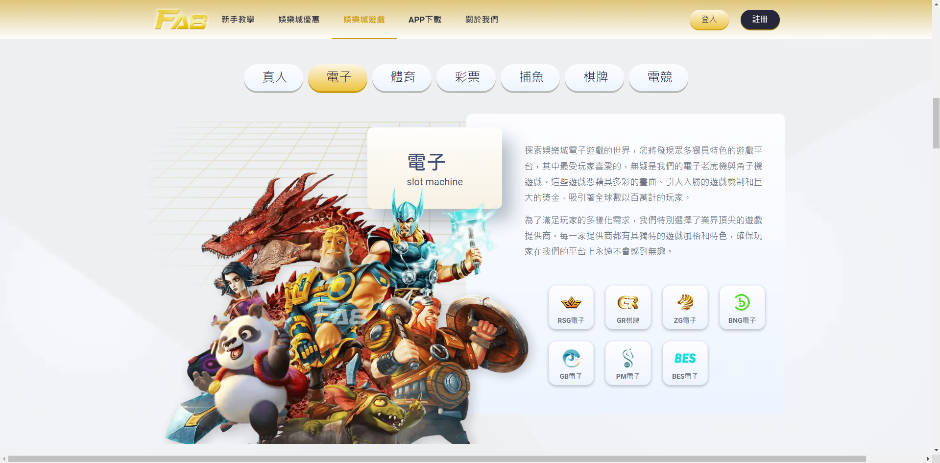FA8娛樂城內共有五家電子遊戲公司:GR電子公司、RSG皇家電子公司、BNG電子公司、BWIN電子公司和ZG電子公司。聽說GR Electronics的《龍族傳奇》好像很容易贏,電子釣魚遊戲也是如此。共有三間餐廳:GR Fishing、RSG Royal Fishing 和 BWIN Fishing。