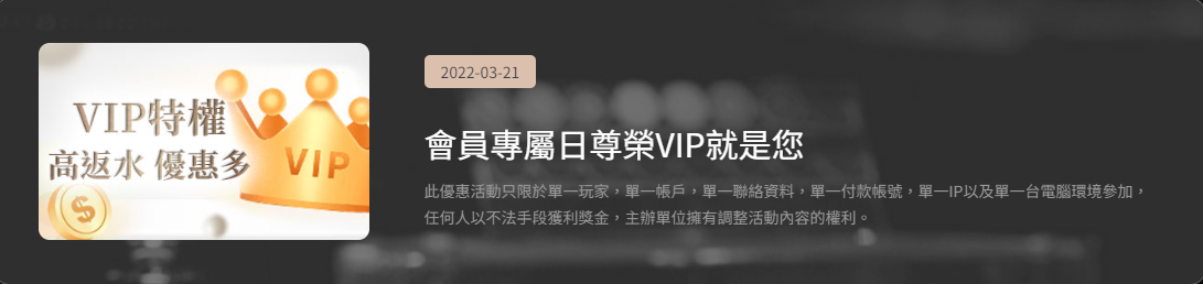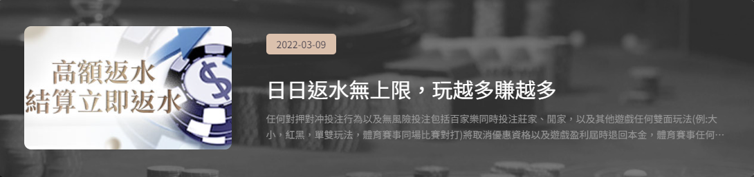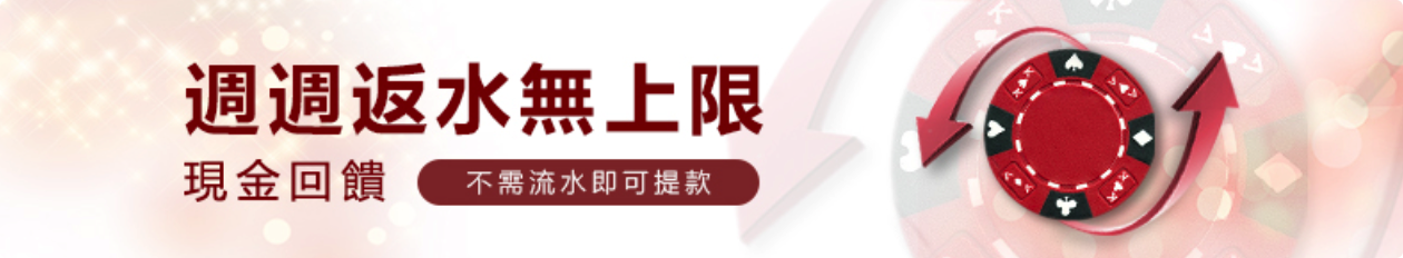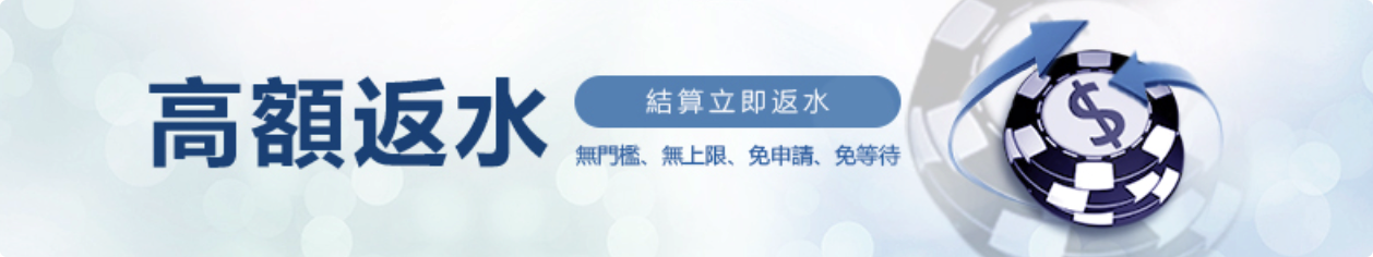 | 體育投注 | 0.4% | 0.45% | 0.5% | 0.55% | 0.6% | 請參閱第2點體育返水範例 |