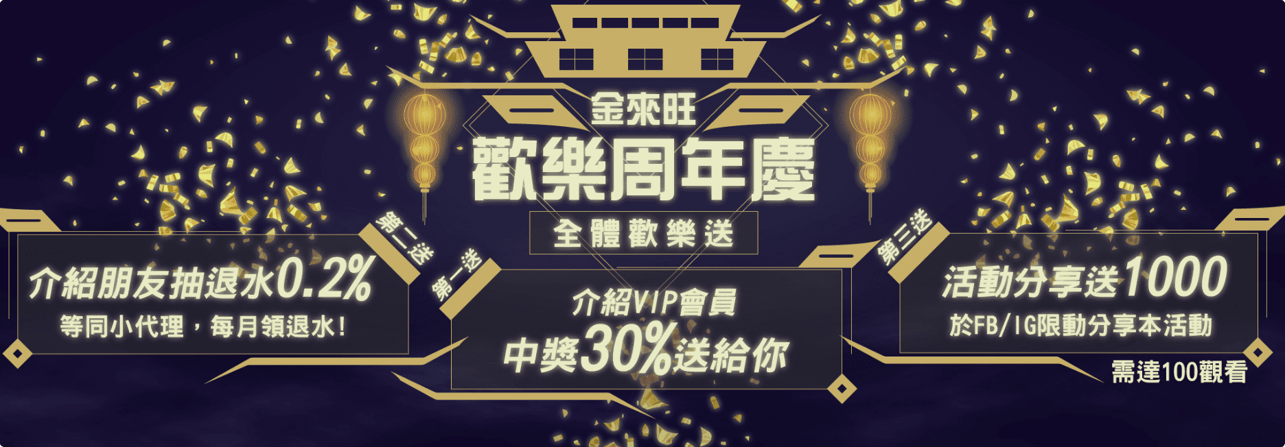 而且,這個回饋是可以無上限累計的哦!那麼,如果你的好友在金來旺娛樂城中了一個100萬的大獎,你只要邀請了他成為VIP會員,那麼你就可以獲得30萬的回饋,是不是超級划算啊!
